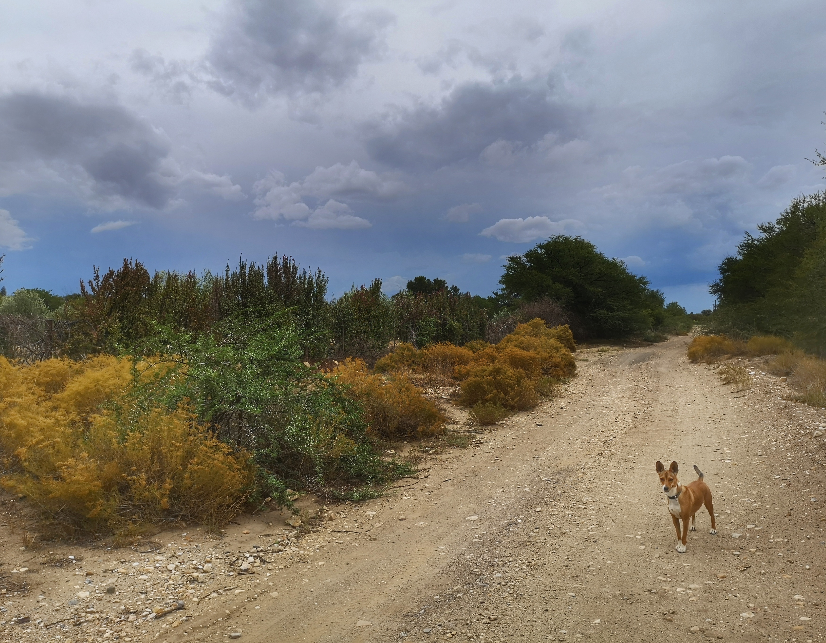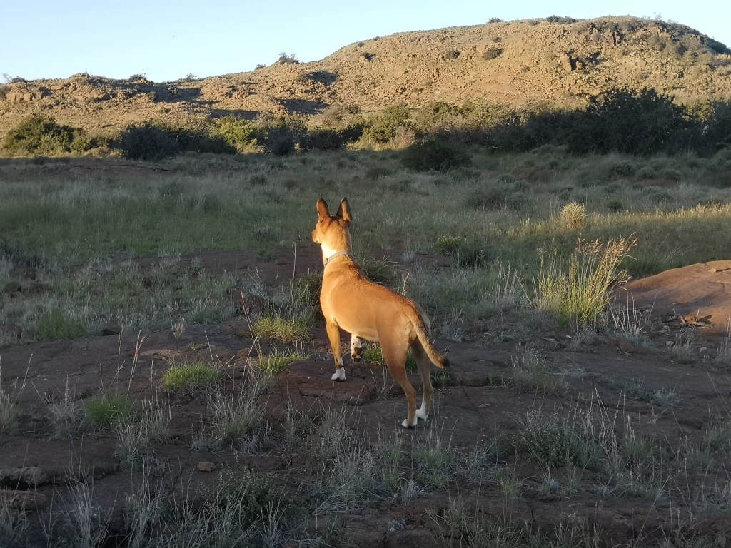 I went for our walk this evening and cried all the way, but you were with me, and I talked to you, just as usual. I ‘saw’ you running in the lei water and ‘grazing’ on the grass you like, looking for the sheep behind the thorny acacia branches. Smelling each furrow and tuft of fur left by some nocturnal visitor on the bottom strand of the barbed wire. You lingered with some scents at the Spekboom hedge and then raced to catch me up, ears back, just like a bullet. Once we crossed the main road, we started our tug of war game with your lead, and you teased your Jack Russell friend next door as we approached the house. I sat on the rock next to you when I got back and told you all about it. I could not control the tears. I need you, Sasha.