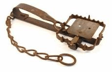 Any weight placed on the flat piece of metal between the toothed jaws would trigger the trap and the jaws would snap shut. It is believed that gin comes from the word engine, meaning a device that did not require human intervention to make it work.