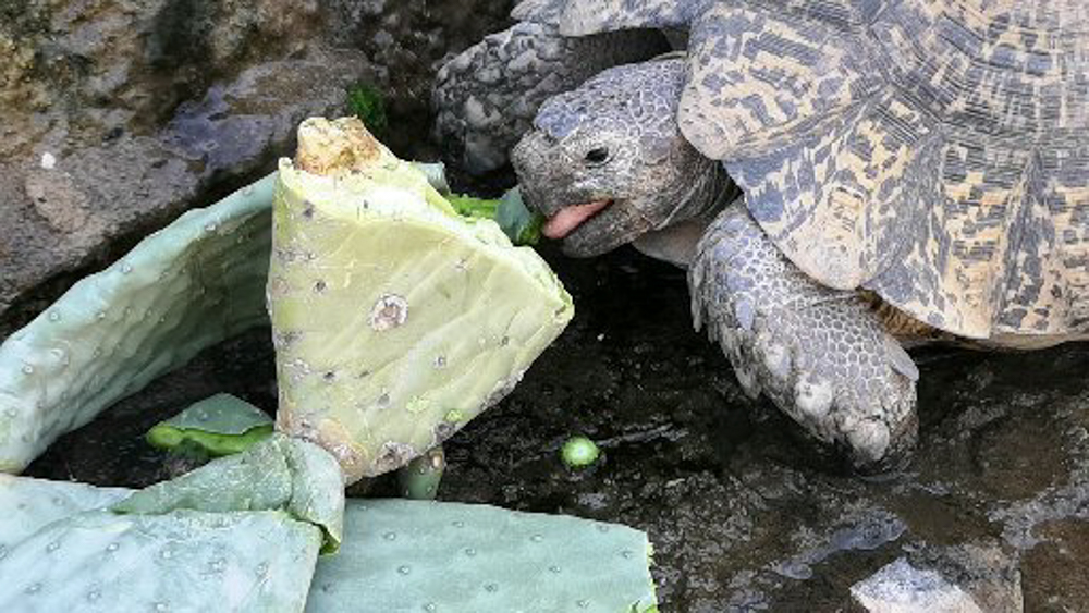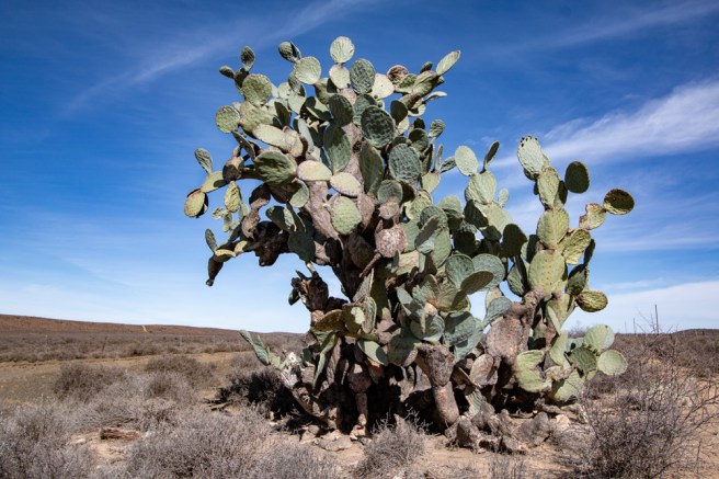 I am an avid amateur photographer and always looking for the shot…especially windmills. I saw one and went forth on this extremely hot day in a very dry place. The reservoir was full and leaking slightly, around the base were 4 tortoises lying in the small shallow muddy pools in the shade of the cracked cement, something for them to drink, but there was not a blade of anything to eat, nothing! I remembered that I had seen a tortoise eating prickly pear leaves a little earlier on my drive and the huge prickly pear (nopal opuntia) cactus plant, where I had just parked my car …I went back. Armed with a broken piece of fence post I slashed and sweated and slashed some more and eventually broke off some spiny cactus which I carried back to the tortoises. Usually timid, once they had the scent, they started devouring the plants…. I went back for more and spread them around a bit. I felt sad that I could not do more, but again, perhaps I saved a life or two. I took no windmill photos, just these